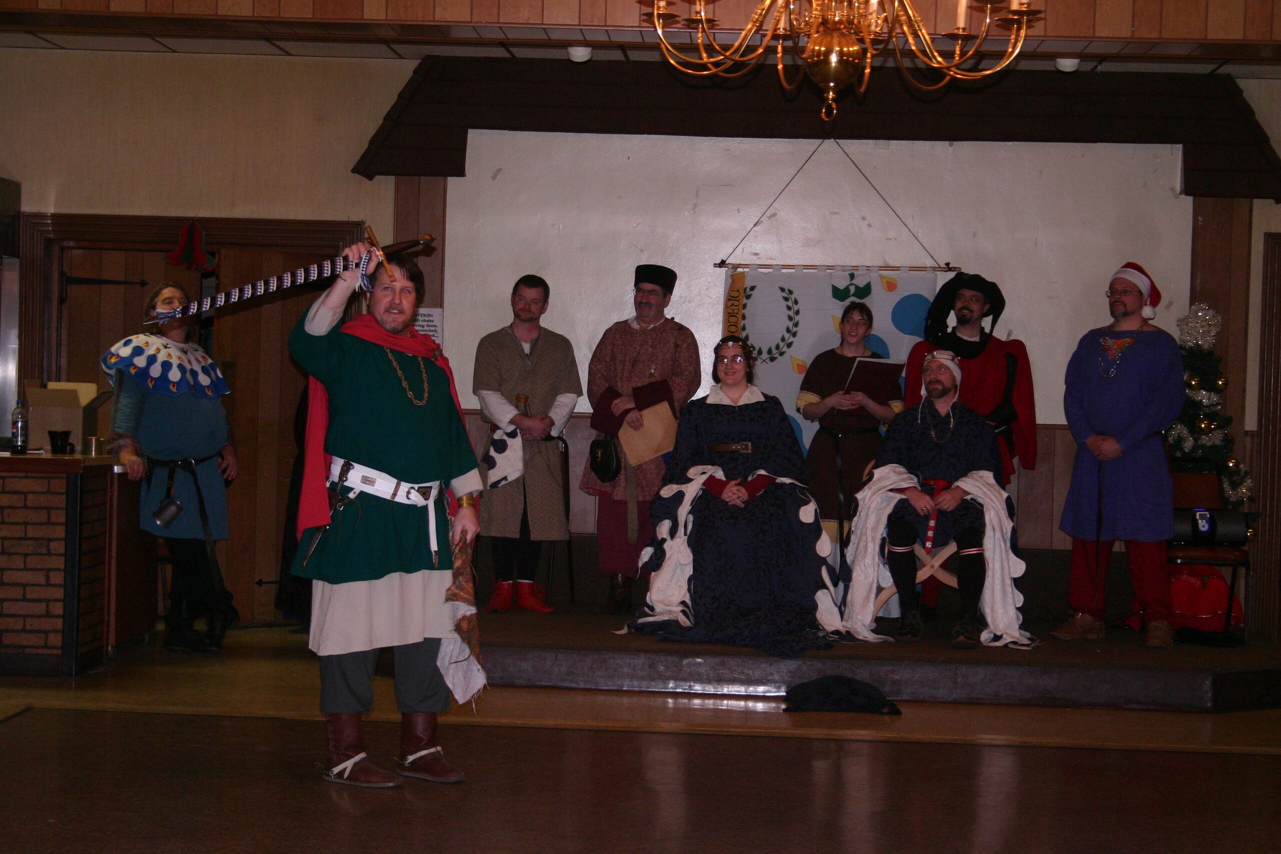 Sir Rutgur presenting the Baronial Sword of State at Yule Revel in 2007
